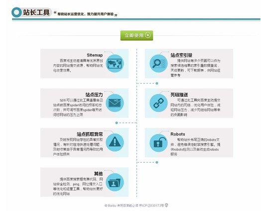 站長可以通過工具區(qū)提供的死鏈推送、站點索引量查詢、站點抓取報錯查詢、robots工具、站點壓力反饋和網(wǎng)站安全監(jiān)測等功能,減輕網(wǎng)站服務(wù)器壓力,提升網(wǎng)頁抓取效率和質(zhì)量,減少網(wǎng)站安全隱患,從而實現(xiàn)網(wǎng)站的精細(xì)化運(yùn)營。資料區(qū)提供了搜索優(yōu)化案例、工具使用說明、網(wǎng)站運(yùn)營經(jīng)驗文檔,幫助站長汲取網(wǎng)站運(yùn)營經(jīng)驗、夯實理論基礎(chǔ);站長社區(qū)的則是站長間溝通和分享的平臺,既會定期組織交流活動和分享討論,,有利于站長們?nèi)¢L補(bǔ)短提升網(wǎng)站運(yùn)作技巧,解決站長面臨的典型問題。