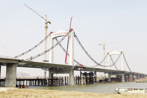 計(jì)劃年底通車(chē)的大慶路淮河公路橋,隨著昨天下午南接線的瀝青混凝土全部鋪筑完成,主體建設(shè)宣告全部結(jié)束。進(jìn)入通車(chē)倒計(jì)時(shí)前的大橋,正在全面“美容”,等待年底驚艷亮相。