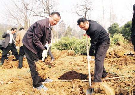 上午10時(shí)許,一到植樹現(xiàn)場(chǎng),周春雨、白金明、何金良、顧世平、方志宏等市幾大班子領(lǐng)導(dǎo)就迅速融入到植樹勞動(dòng)的大軍之中。他們興致勃勃地拿起鐵鍬,同在場(chǎng)的干部一起揮鍬挖土,將一棵棵樹苗植入樹坑,培土,澆灌,每道工序都做得十分認(rèn)真。市委書記周春雨、市長(zhǎng)白金明一邊植樹,一邊與市林業(yè)局、住建委負(fù)責(zé)同志交談,了解全市植樹造林及“綠滿珠城”工作開展情況。經(jīng)過一番緊張勞動(dòng),300多棵桂花、櫻花等樹木昂然挺立,在和煦的春光中綻放蓬勃生機(jī)。